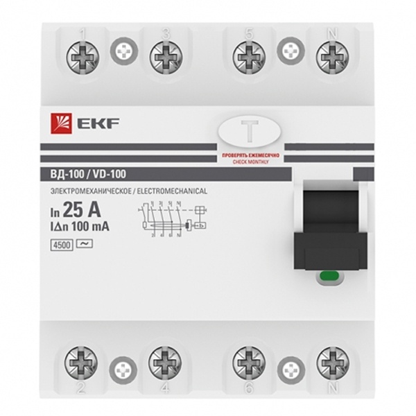 • УЗО EKF PROxima ВД-100 4P 25А/100мА (электромеханическое) АС (ВДТ)