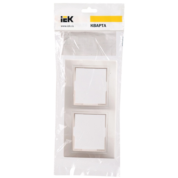 Декоративное, двухпостовое обрамление из пластика, вертикального монтажа, для электроустановочных механизмов ИЭК КВАРТА, цвет белый EMK21-K01-DM