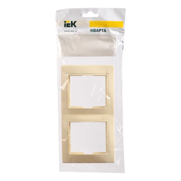 Декоративное, двухпостовое обрамление из пластика, вертикального монтажа, для электроустановочных механизмов ИЭК КВАРТА, цвет кремовый EMK21-K33-DM