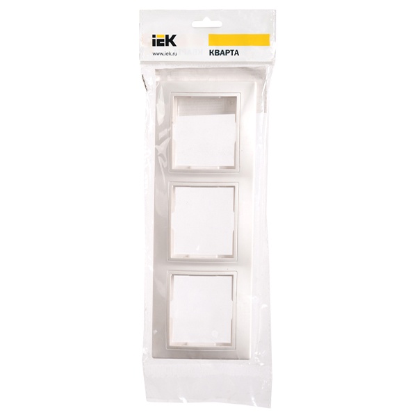 Декоративное, трехпостовое обрамление из пластика, вертикального монтажа, для электроустановочных механизмов ИЭК КВАРТА, цвет белый EMK31-K01-DM