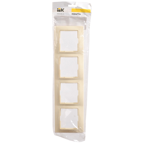 Декоративное, четырехпостовое обрамление из пластика, горизонтального монтажа, для электроустановочных механизмов ИЭК КВАРТА, цвет кремовый EMK40-K33-DM