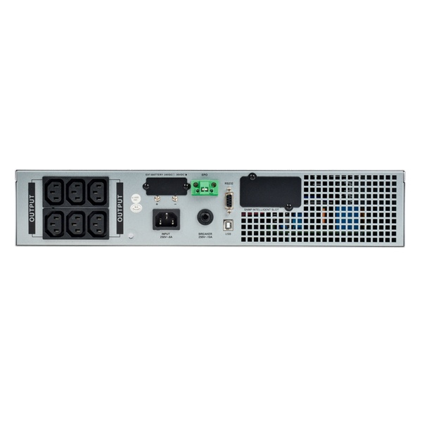 ИБП оснащён двумя аккумуляторными батареями ёмкостью 9 А·ч, обеспечивающими стабильную работу оборудования в случае отключения электроэнергии. На задней панели расположены шесть розеток формата C13 для подключения различных устройств.