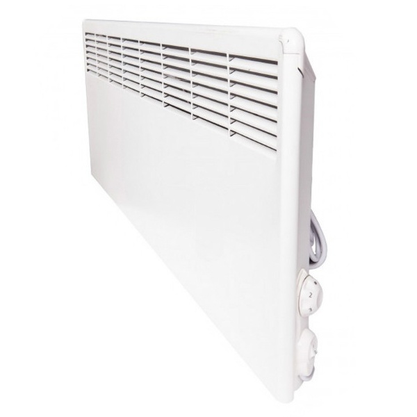 Высококачественный электрический конвектор с механическим термостатом, кабелем и евровилкой. Может устанавливаться в сухих и влажных помещениях.