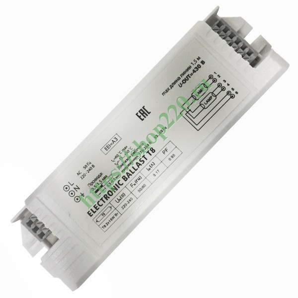 - Предназначен для работы с двумя лампами T8 по 18 Вт