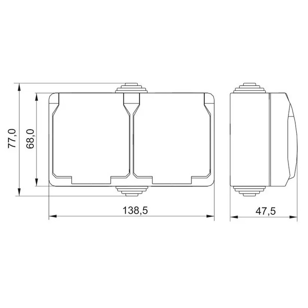 Розетка двойная влагозащищенная накладного монтажа, с заземлением и крышкой ИЭК, 16 Ампер ERA22-K03-16-54