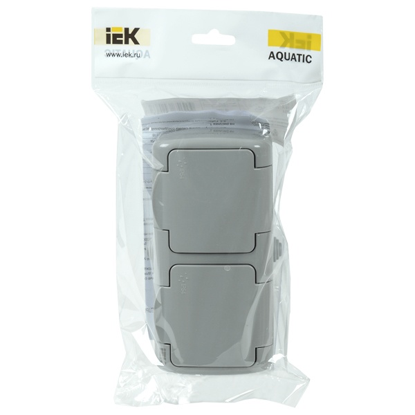 Серия электроустановочных изделий AQUATIC IEK с повышенной степенью защиты IP54 предназначена для организации электроснабжения в условиях высокой влажности, в пыльных помещениях, мастерских, гаражах, а также на улице при установке под навесом, защищающем от прямого попадания осадков.Серия AQUATIC IEK продумана до мельчайших деталей для удобства и безопасного использования.
