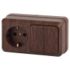 Электрическая внешняя под дерево сосна розетка IEK двойная силовая 16А электросети 220В IP20 открытой установки на стену ERH21-K34-16