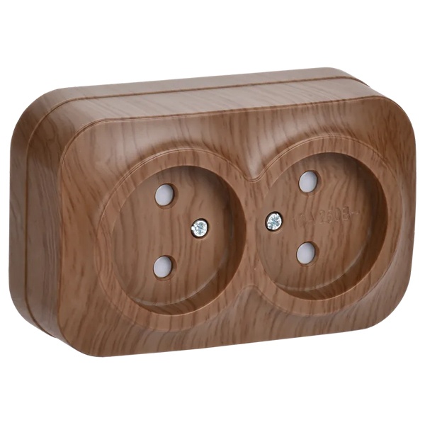 Розетка электрическая двойная двухполюсная с защитными шторками, накладного монтажа Глори ИЭК цвета дуб ERH23-K24-10