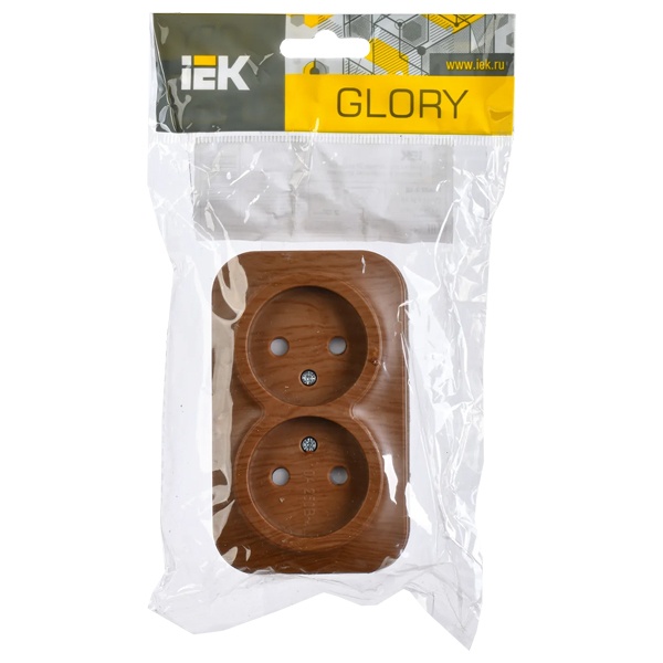 Розетка 2-м ОП GLORY РСш22-2-ХД 10А без заземл. защ. шторки дуб IEK ERH23-K24-10