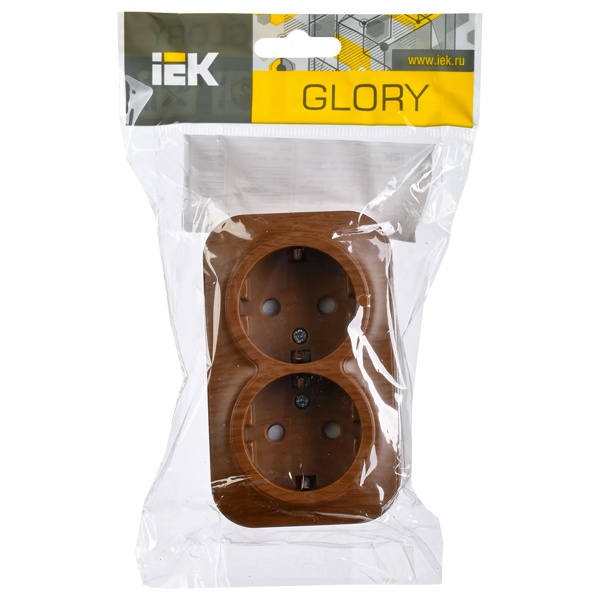 Розетка 2-м ОП GLORY РСш22-3-ХД 16А с заземл. защ. шторки дуб IEK ERH24-K24-16