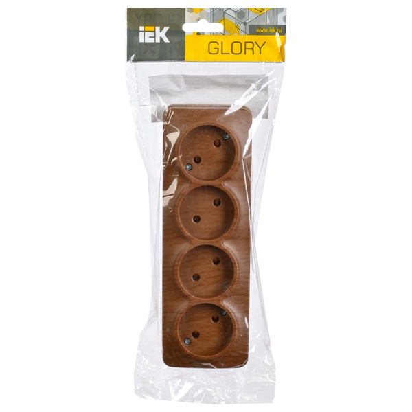 Розетка 4-м ОП GLORY РС24-2-ХД 10А без заземл. дуб IEK ERH40-K24-10