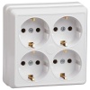 Электрическая внешняя белая матовая розетка IEK четверная силовая 16А электросети 220В IP20 открытой установки на стену ERH41-K01M-16