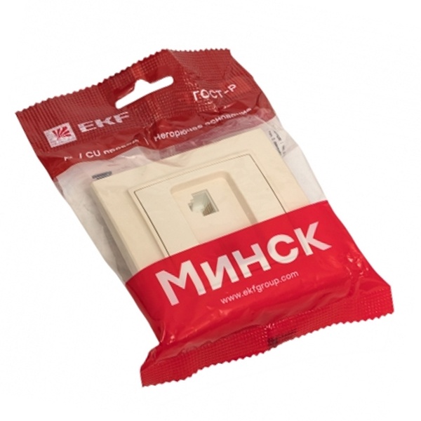 Информационная розетка с гнездом RJ45 и RJ11 для скрытой установки в сухих помещениях, бежевого цвета, ЕКФ серии Минск. ERK00-135-20