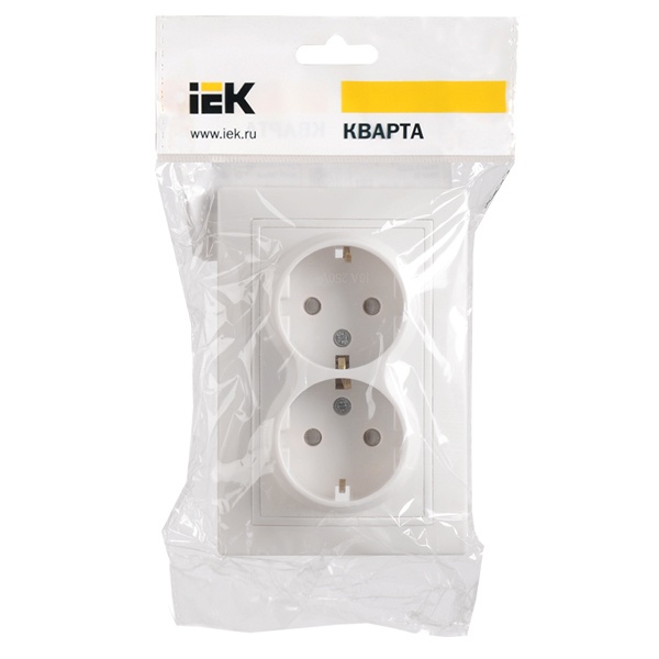 Розетка 2-м СП Кварта РСш12-3-КБ 16А IP20 с заземл. защ. шторки бел. IEK ERK21-K01-16-DM