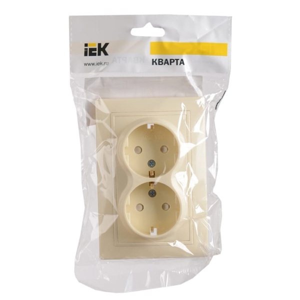 Механизм двойной розетки с заземляющими контактами, скрытого монтажа ИЭК КВАРТА, цвет кремовый, с керамическим основанием ERK21-K33-16-K