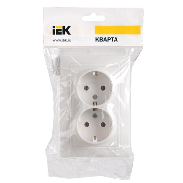 Механизм двойной розетки с защитными шторками и заземляющими контактами, скрытого монтажа ИЭК КВАРТА, цвет белый, с керамическим основанием ERK24-K01-16-K