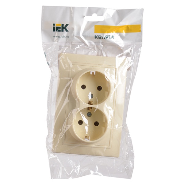 Механизм двойной розетки с защитными шторками и заземляющими контактами, скрытого монтажа ИЭК КВАРТА, цвет кремовый, с керамическим основанием ERK24-K33-16-K