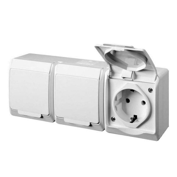 Розетка 3-м ОП Гермес Plus РСб23-3-ГПБб 16А IP54 с заземл. с крышкой бел. IEK ERMP32-K01-16-54-EC