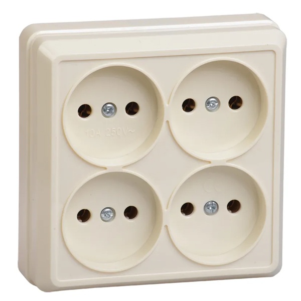 Электрическая внешняя кремовая розетка четверная силовая 16А электросети 220В IP20 открытой установки на стену ERO40-K33-10-DC