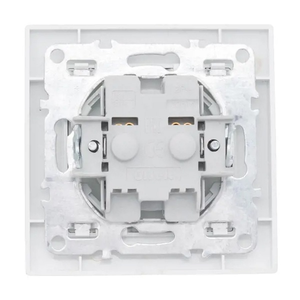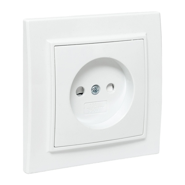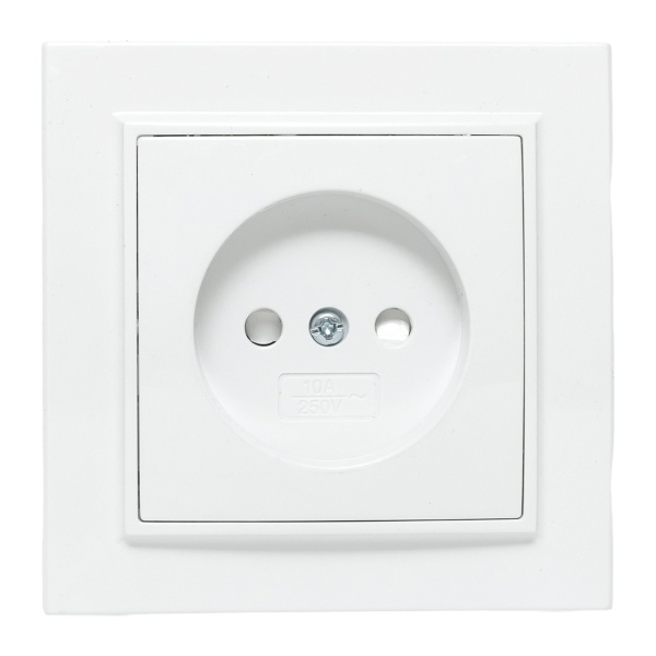 Электрическая розетка двухполюсная с защитными шторками для скрытой установки в сухих помещениях, белого цвета, ЕКФ серии Минск. ERR10-022-100