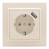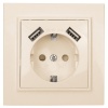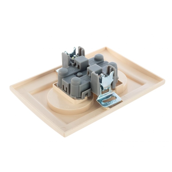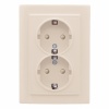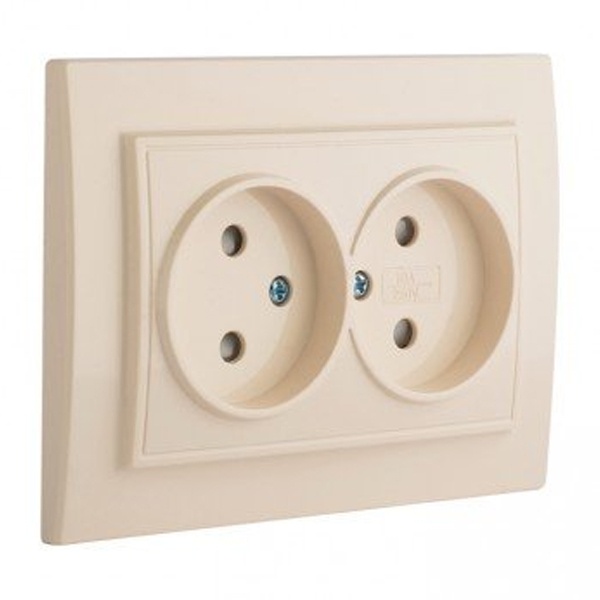 Двойная электрическая розетка двухполюсная с защитными шторками для скрытой установки в одну монтажную коробку в сухих помещениях, бежевого цвета, ЕКФ серии Минск. ERR10-102-200