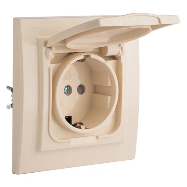 Электрическая розетка немецкого стандарта с защитными шторками и крышкой для скрытой установки , бежевого цвета, ЕКФ серии Минск. ERR16-029-200-44