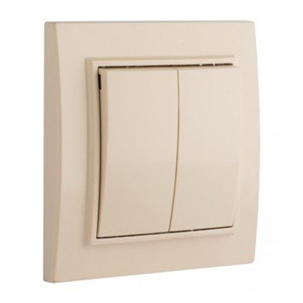 Двухклавишный выключатель для скрытой установки в сухих помещениях, бежевого цвета, ЕКФ серии Минск. ERV10-023-20