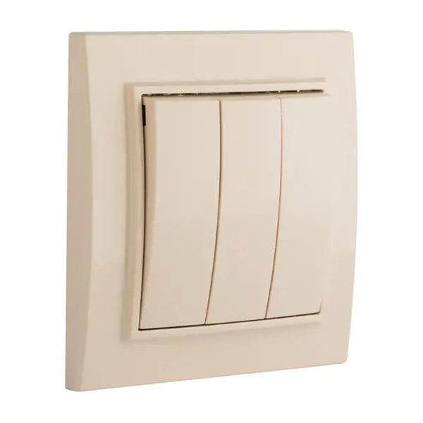Трехклавишный выключатель для скрытой установки в сухих помещениях, бежевого цвета, ЕКФ серии Минск. ERV10-024-20
