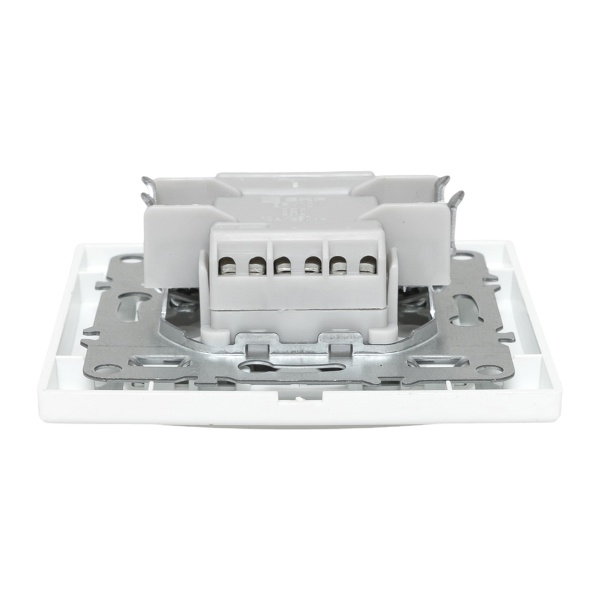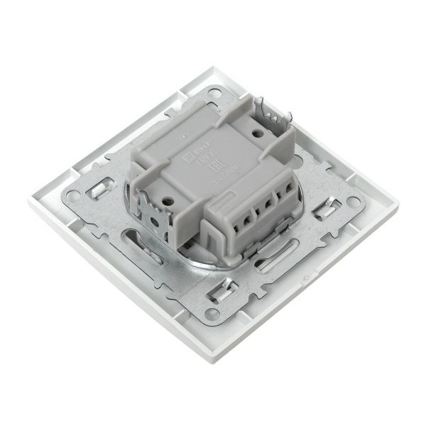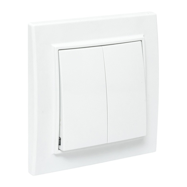 Двухклавишный проходной выключатель для скрытой установки в сухих помещениях, белого цвета, ЕКФ серии Минск. ERV10-027-10