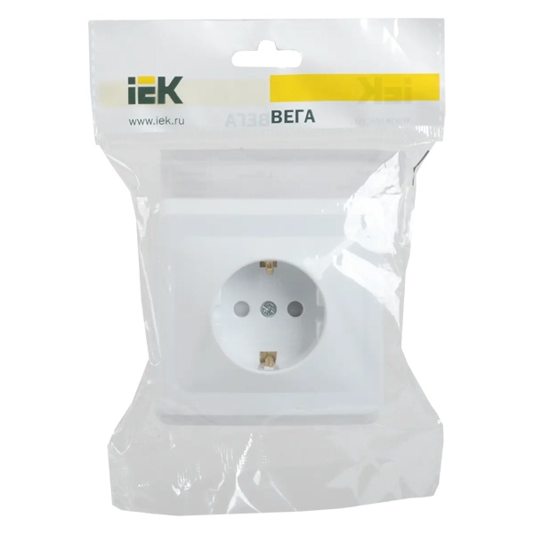 Розетка 1-м СП Вега РСш10-3-ВБ с заземл. контактом и защ. штор 16А бел. IEK ERV14-K01-16-DM