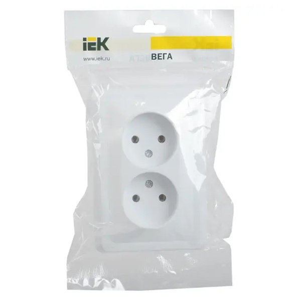 Розетка 2-м СП Вега РС12-2-ВБ без заземл. контакта без защ. штор 10А бел. IEK ERV20-K01-10-DM