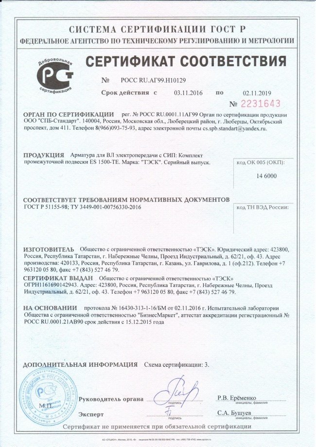 Монтажный комплект промежуточного подвеса провода СИП с несущей нулевой жилой 10300111