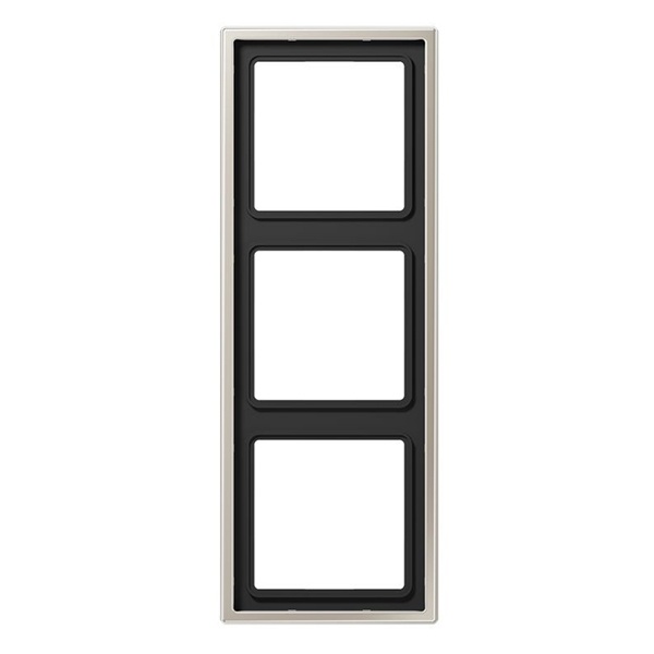 Декоративная рамка металлического исполнения Jung серии LS 990 для горизонтально и вертикальной установки под 3 электроустановочных изделия, цвет нержавеющая сталь ES2983