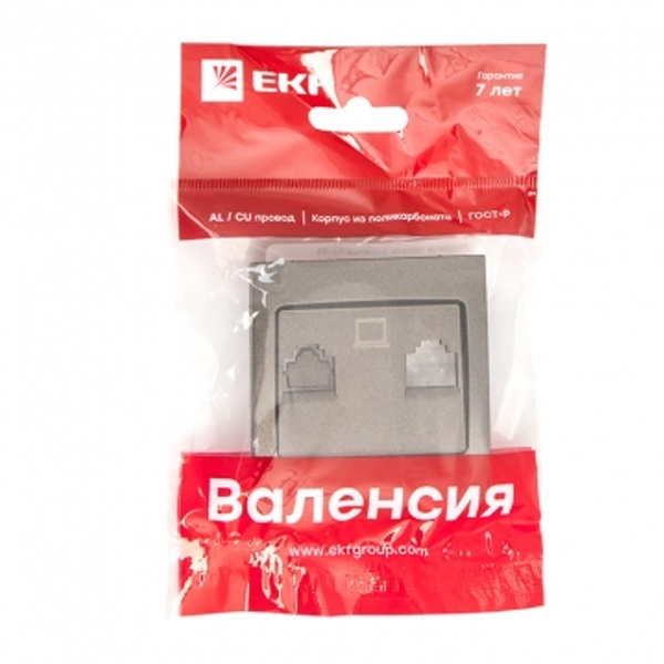 Декоративная накладка для одного механизма информационной розетки с разъемом RJ45 ЕКФ, серия Валенсия, цвета асфальт ESK01-L-035-60