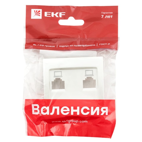 Декоративная накладка для двух механизмов информационной розетки с разъемом RJ45 ЕКФ, серия Валенсия, белого цвета ESK02-L-035-50
