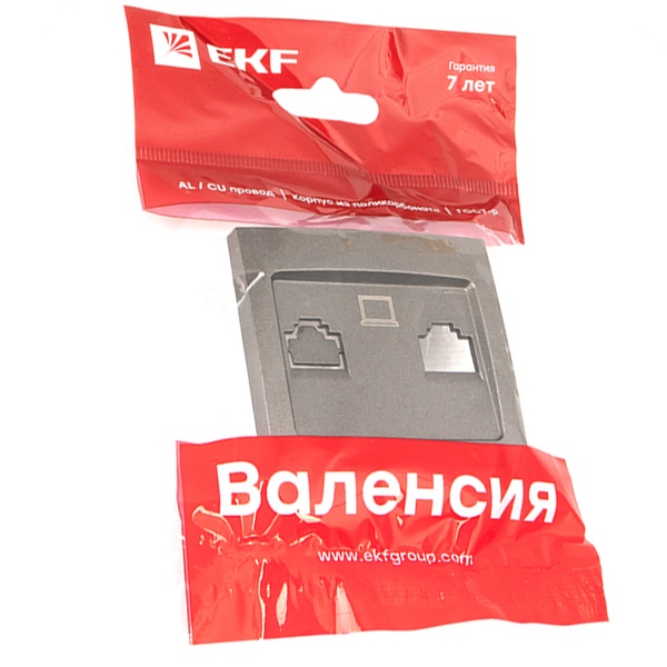 Декоративная накладка для двух механизмов информационной розетки с разъемом RJ45 ЕКФ, серия Валенсия, цвета асфальт ESK02-L-035-60