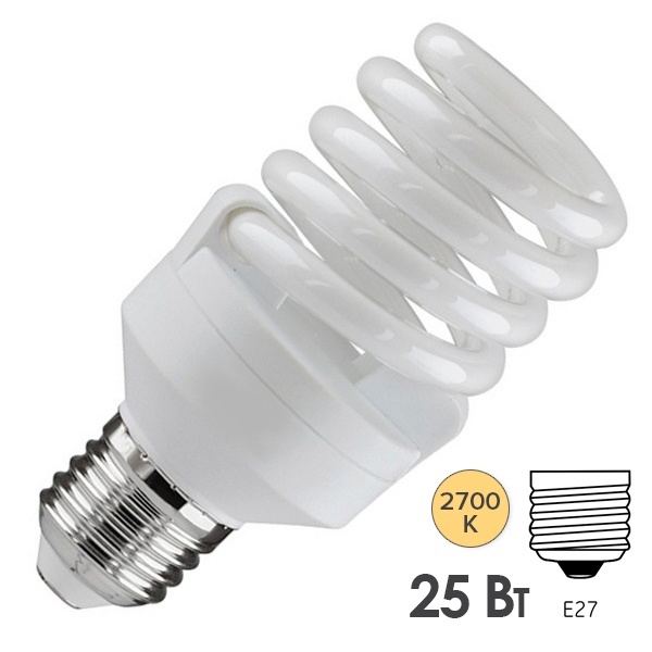 Компактная спиральная люминесцентная лампа КЛЛ мощностью 25 Ватт с цоколем Е27 на 220 Вольт 601766