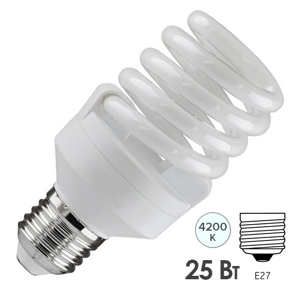 Компактная спиральная люминесцентная лампа КЛЛ мощностью 25 Ватт с цоколем Е27 на 220 Вольт 611352
