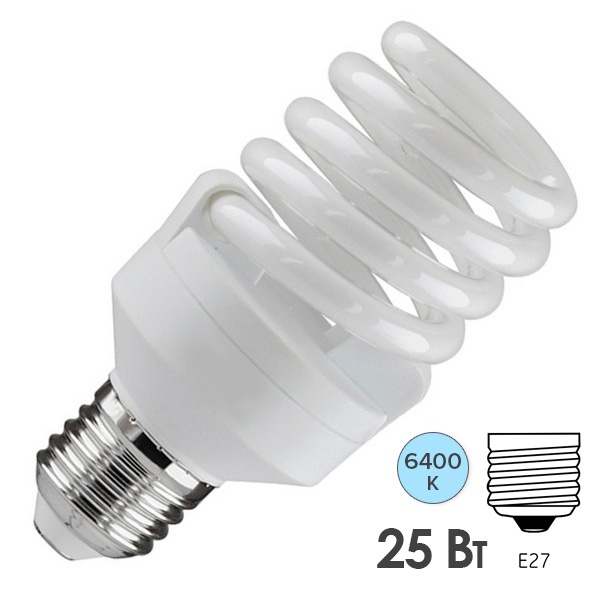 Компактная спиральная люминесцентная лампа КЛЛ мощностью 25 Ватт с цоколем Е27 на 220 Вольт 601773