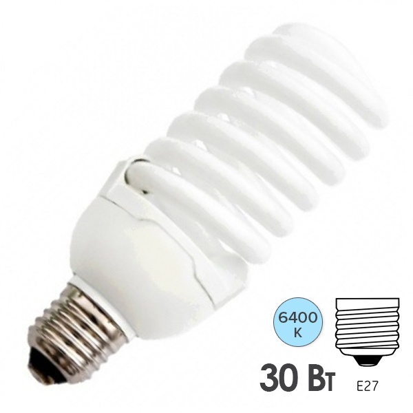 Компактная спиральная люминесцентная лампа КЛЛ мощностью 30 Ватт с цоколем Е27 на 220 Вольт 7807332603007