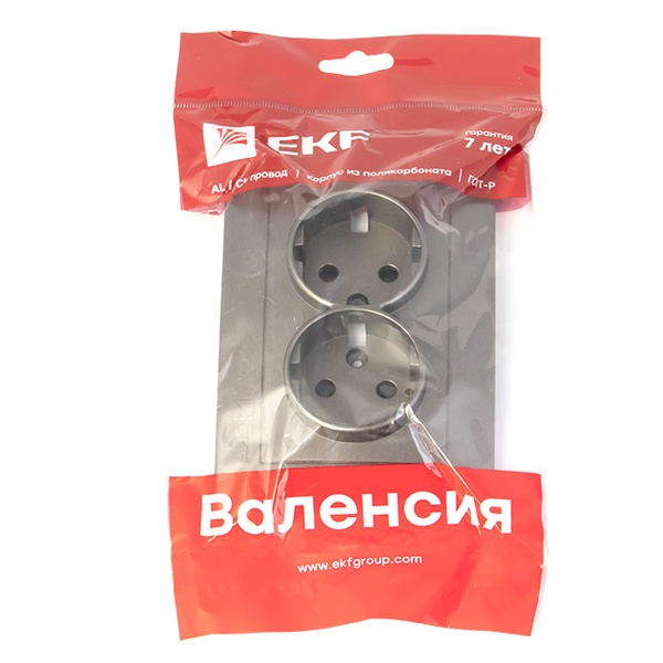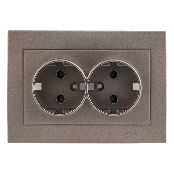 Декоративная накладка для механизма двойной розетки с заземлением ЕКФ, серия Валенсия, цвета асфальт ESR16-L-128-60