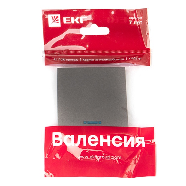 Декоративная накладка для механизма одноклавишного выключателя с подсветкой ЕКФ, серия Валенсия, цвета асфальт ESV10-L-121-60