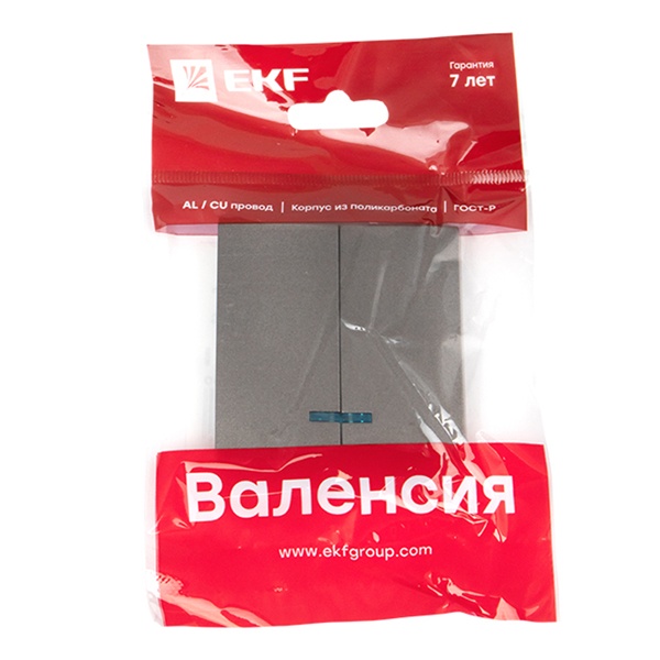 Декоративная накладка для механизма двухклавишного выключателя с подсветкой ЕКФ, серия Валенсия, серого цвета ESV10-L-123-30