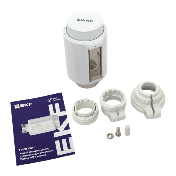 Терморегулятор для радиатора отопления Zigbee EKF Connect (термоголовка) предназначен для управления радиаторами отопительной системы. Использовать удаленные функции программирования устройства можно после его установки и подключения через мобильное приложение EKF Connect.