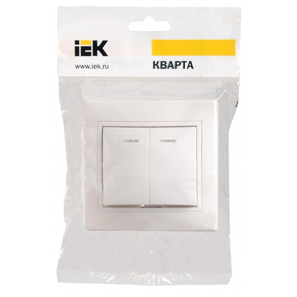 Механизм двухклавишного выключателя с подсветкой, скрытого монтажа ИЭК КВАРТА, цвет белый EVK21-K01-10-DM