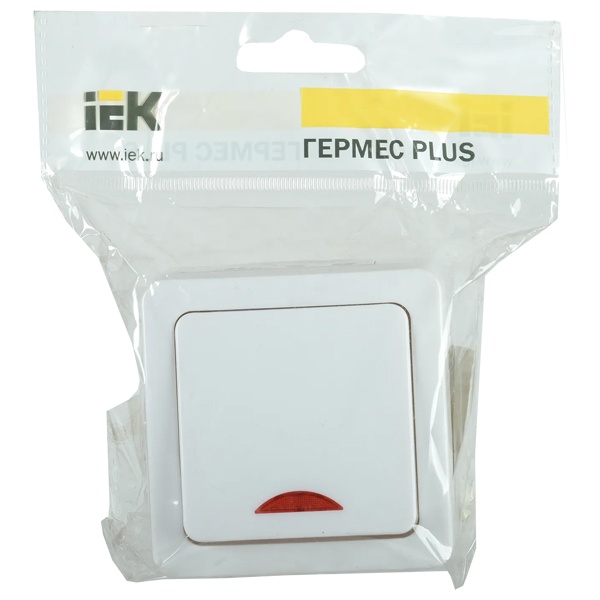 Выключатель с индикацией одноклавишный влагозащищенный ИЭК ГЕРМЕС PLUS накладного монтажа, белый цвет EVMP11-K01-10-54-EC