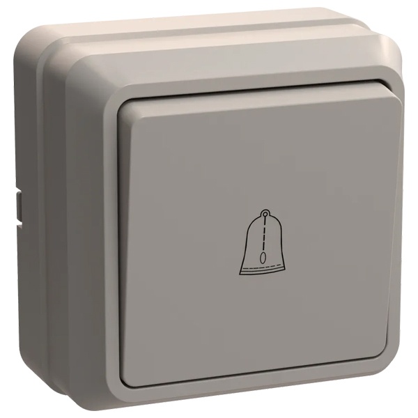 Однокнопочный выключатель накладного монтажа, с символом звонок, ИЭК кремового цвета EVO13-K33-10-DC