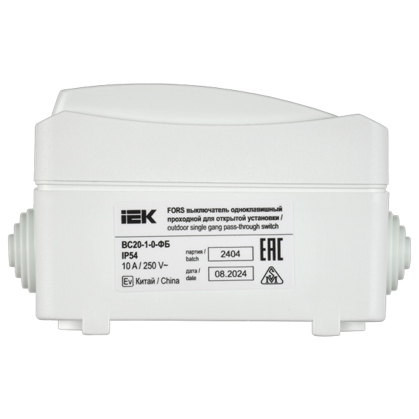Переключатель 1-клавишный, влагозащищенный, накладного монтажа, белого цвета ИЭК Форс EVS10-K01-10-54-DC