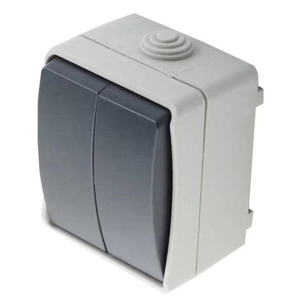 Почему его берут на практике: когда нужен выключатель, который не жалко поставить в гараж или цеховую подсобку, и при этом не возвращаться к нему через месяц из-за заеданий и сырости. Плюс двухклавишный формат часто закрывает задачу без лишних коробок: вместо двух отдельных выключателей ставится один корпус — аккуратнее и меньше точек ввода кабеля.
