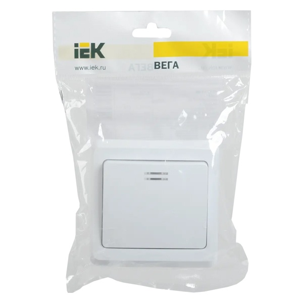 Выключатель 1-кл. СП Вега 10А IP20 ВС10-1-1-ВБ с индикацией бел. IEK EVV11-K01-10-DM